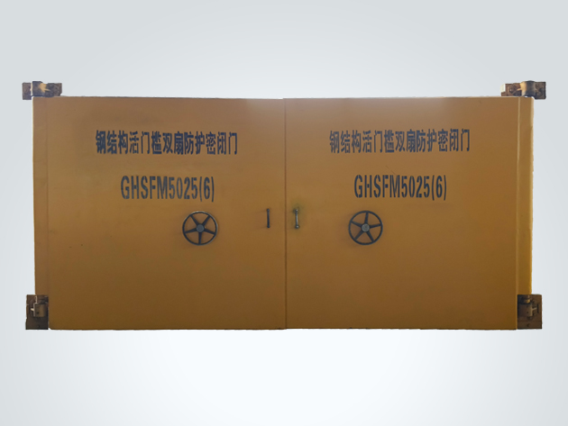 钢结构活门槛双扇防护密闭门的门扇为钢梁板结构。战时每扇有两边搭接在门框上。下边与安装后的活门槛搭接。一边自由上下两侧为主受力方向,活门槛既要承受下端门扇传递的冲击波荷载又要实现密闭功能。钢结构活门槛通常采用联动插销式闭锁。视孔口尺寸及门扇重量采用分体或联体式铰页机构。由于钢结构双扇门中缝处的密封构造左右门扇按先后顺序关闭。安装有缝胶条的一扇先关闭锁紧,再关闭锁紧另一门扇。 产品组成:门扇、门框、活门槛、活门槛支架、闭锁、铰页、密封胶条 产品分类:GHSFM6025(5)、GHSFM5525(5)、GHSFM4025、 应用范围:适用于5级以下人防工程